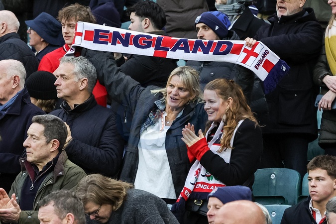 England fans with a England scarf during the Guinness Six Nations 2026 match England vs Wales at Allianz Stadium, Twickenham, United Kingdom on 07 February 2026, Credit:Mark Cosgrove/News Images / Avalon