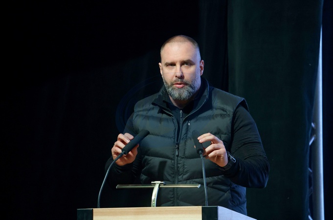 Kharkiv Regional Military Administration head Oleh Syniehubov delivers a welcoming address at the Forum of Frontline Cities and Communities "Resilience, Recovery, Development: Vision of Frontline Communities – 2026,” Kharkiv, Ukraine, on February 5, 2026., Credit:Viacheslav Madiievskyi / Avalon