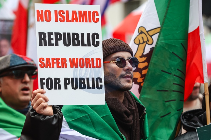 March supporting Iranian uprising outside Downing Street in London, UK, on 07 February 2026