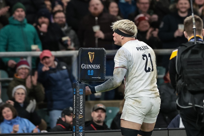 Henry Pollock of England celebrates his try during the Guinness Six Nations 2026 match England vs Wales at Allianz Stadium, Twickenham, United Kingdom on 07 February 2026, Credit:Mark Cosgrove/News Images / Avalon