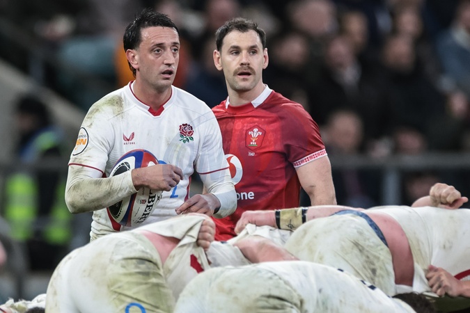 Alex Mitchell of England looks over the scrum during the Guinness Six Nations 2026 match England vs Wales at Allianz Stadium, Twickenham, United Kingdom on 07 February 2026, Credit:Mark Cosgrove/News Images / Avalon
