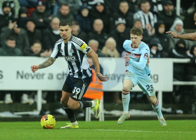 Bruno Guimaraes of Newcastle United with the ball during the Premier League match Newcastle Untied vs Brentford at St. James's Park, Newcastle, United Kingdom on 07 February 2026, Credit:Richard Bierton/News Images / Avalon