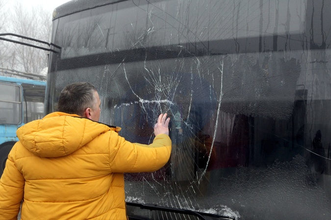 Deputy Head of the Transport Department at the Department of Transport and Transport Infrastructure of the Dnipro City Council Ivan Vasiuchkov looks at a trolleybus damaged in a Russian drone strike, Dnipro, Ukraine, February 7, 2026. On the night of February 7, the Russian army launched more than 400 drones and about 40 missiles across Ukraine, targeting energy and civil infrastructure. In Dnipro, 18 passenger trolleybuses, one service vehicle, and other transport were damaged at a depot, while administrative buildings and heating systems were also affected., Credit:Mykola Miakshykov / Avalon