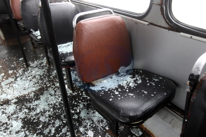 Glass shards cover the seat inside a trolleybus at a depot after a Russian drone strike, Dnipro, Ukraine, February 7, 2026. On the night of February 7, the Russian army launched more than 400 drones and about 40 missiles across Ukraine, targeting energy and civil infrastructure. In Dnipro, 18 passenger trolleybuses, one service vehicle, and other transport were damaged at a depot, while administrative buildings and heating systems were also affected., Credit:Mykola Miakshykov / Avalon