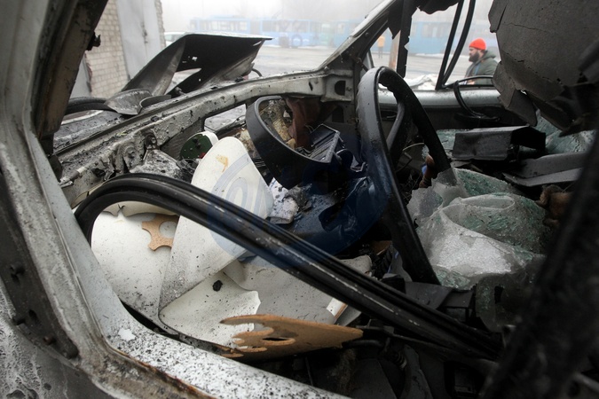 The driver's seat inside a trolleybus is damaged at a depot after a Russian drone strike, Dnipro, Ukraine, February 7, 2026. On the night of February 7, the Russian army launched more than 400 drones and about 40 missiles across Ukraine, targeting energy and civil infrastructure. In Dnipro, 18 passenger trolleybuses, one service vehicle, and other transport were damaged at a depot, while administrative buildings and heating systems were also affected., Credit:Mykola Miakshykov / Avalon