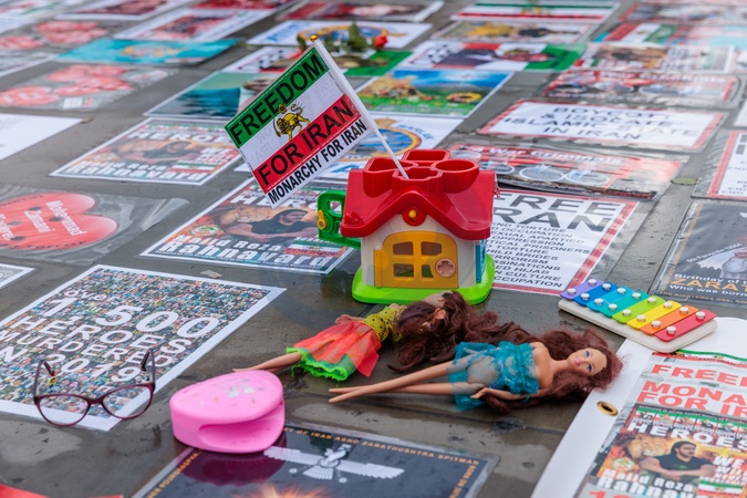 Trafalgar Square, London, UK. 7th February 2026.A 'Stop The Genocide' Exhibition to honour and remember those killed by the government of the Islamic Republic of Iran over the 47 years since the Islamic Revolution in 1979.Hundreds of photographs and personal objects were surrounded by candles and flowers.Many images included some of the estimated 90,000 killed during the current genocide by the regime; 12,000 - 36,500 of those are thought to have been killed over the Jan 8th-9th crackdown on the current protests., Credit:Photo by Amanda Rose / Avalon