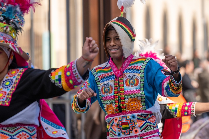A young male dancer from a traditional Bolivian folk group participating in the 2026 Chinese New Year parade in Barcelona, Credit:© 2026 Ivan Sánchez Jiménez / Avalon