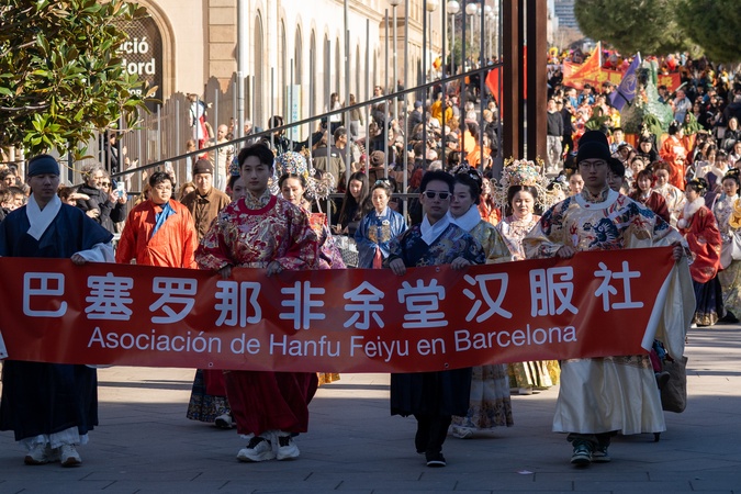 Traditional Chinese New Year parade in Barcelona, celebrating the Year of the Horse 2026.
