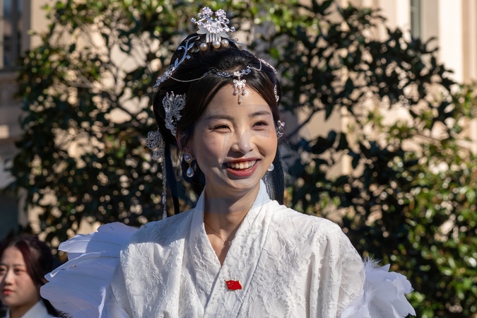 A woman dressed in traditional Chinese attire participating in the 2026 Chinese New Year celebrations in Barcelona, Credit:© 2026 Ivan Sánchez Jiménez / Avalon