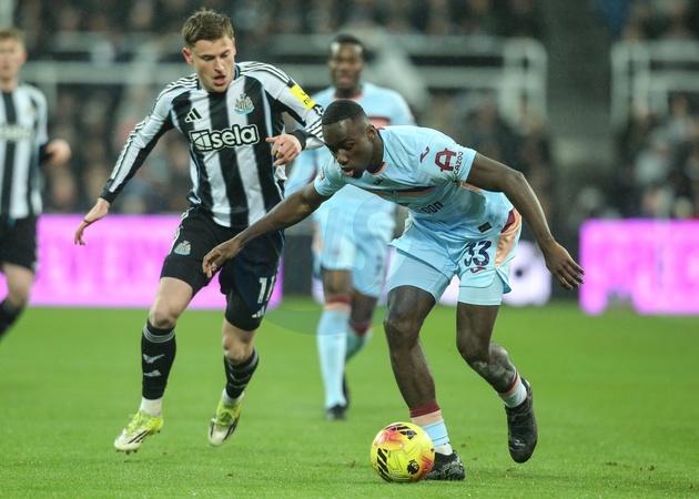 Michael Kayode of Brentford breaks with the ball during the Premier League match Newcastle Untied vs Brentford at St. James's Park, Newcastle, United Kingdom on 07 February 2026, Credit:Richard Bierton/News Images / Avalon