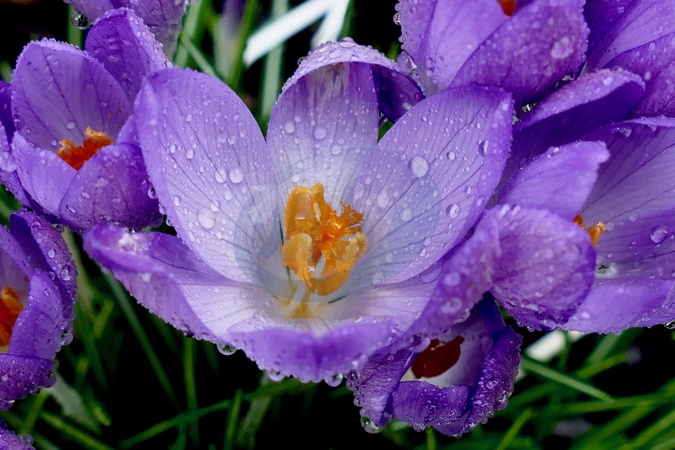 Raindrops on the pretty crocus flowers after the continued bad weather., Credit:Geoffrey Swaine / Avalon