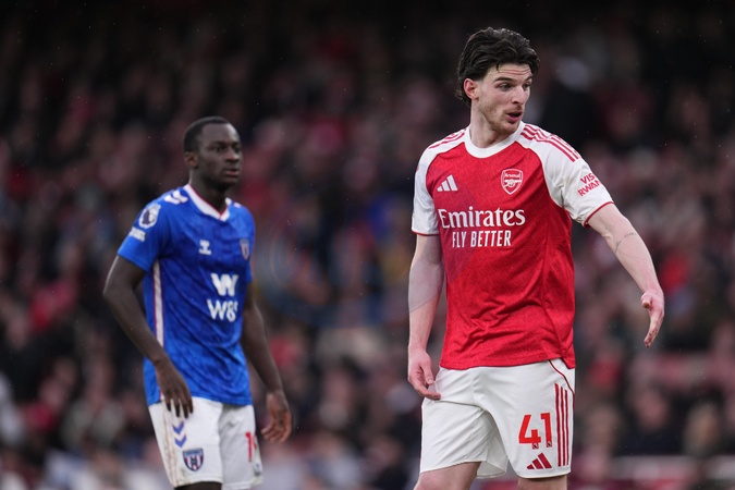 Declan Rice of Arsenal during the Premier League match Arsenal vs Sunderland at Emirates, London, United Kingdom on 07 February 2026, Credit:Harvey Murphy/News Images / Avalon