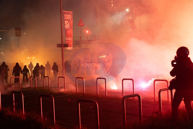 National demonstration "Let's take back our cities, let's free the mountains - Against the most unsustainable Olympic Games ever," organized to protest the first day of competition at the Milan-Cortina Winter Olympics. Clashes between protesters and police are pictured. Milan. Italy 07 Feb 2026, Credit:Selene Daniele/AGF / Avalon