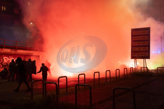 National demonstration "Let's take back our cities, let's free the mountains - Against the most unsustainable Olympic Games ever," organized to protest the first day of competition at the Milan-Cortina Winter Olympics. Clashes between protesters and police are pictured. Milan. Italy 07 Feb 2026, Credit:Selene Daniele/AGF / Avalon
