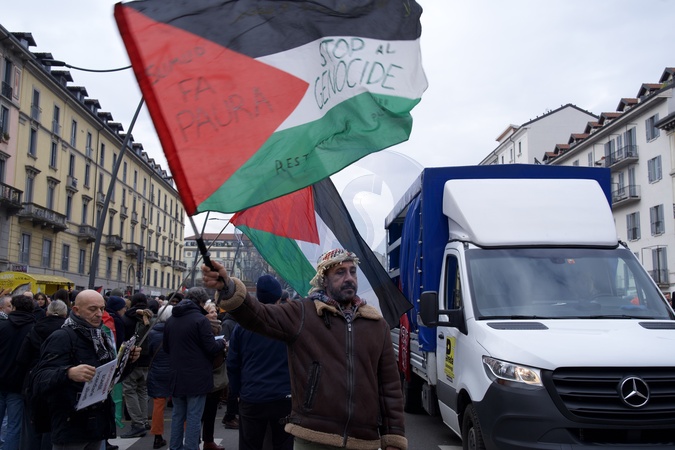 National demonstration "Let's take back our cities, let's free the mountains - Against the most unsustainable Olympic Games ever," organized to protest the first day of competition at the Milan-Cortina Winter Olympics. Milan. Italy 07 Feb 2026, Credit:Selene Daniele/AGF / Avalon