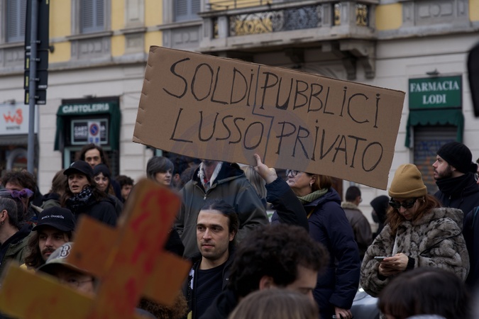 National demonstration "Let's take back our cities, let's free the mountains - Against the most unsustainable Olympic Games ever," organized to protest the first day of competition at the Milan-Cortina Winter Olympics. Milan. Italy 07 Feb 2026, Credit:Selene Daniele/AGF / Avalon
