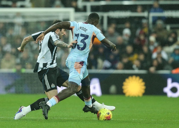 Sandro Tonali of Newcastle United and Michael Kayode of Brentford battle for the ball during the Premier League match Newcastle Untied vs Brentford at St. James's Park, Newcastle, United Kingdom on 07 February 2026, Credit:Richard Bierton/News Images / Avalon