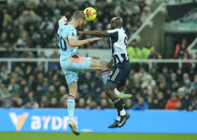 Kristoffer Ajer of Brentford jumps up to win the high ball during the Premier League match Newcastle Untied vs Brentford at St. James's Park, Newcastle, United Kingdom on 07 February 2026, Credit:Richard Bierton/News Images / Avalon