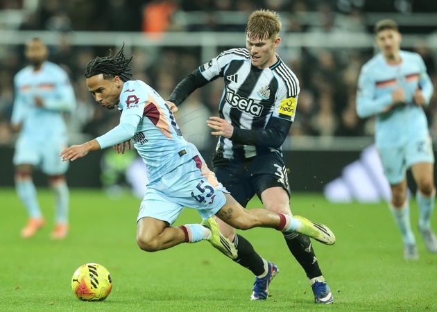 Romelle Donovan of Brentford is fouled by Lewis Hall of Newcastle United during the Premier League match Newcastle Untied vs Brentford at St. James's Park, Newcastle, United Kingdom on 07 February 2026, Credit:Richard Bierton/News Images / Avalon