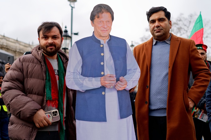 Around 400 protesters held a rally opposite Downing Street to call for the release Imran Khan and for him to be allowed to lead Pakistan, Credit:Aldo Ciarrocchi / Avalon