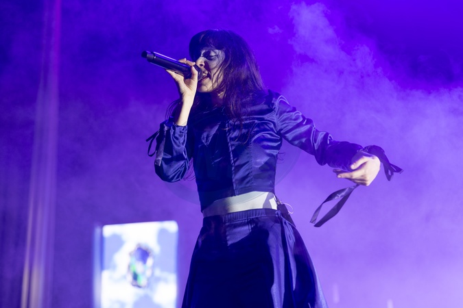 Mica Tenenbaum of American alternative pop duo Magdalena Bay performs at Manchester Apollo, Manchester, England, 8th February 2026, Credit:Mike Gray / Avalon
