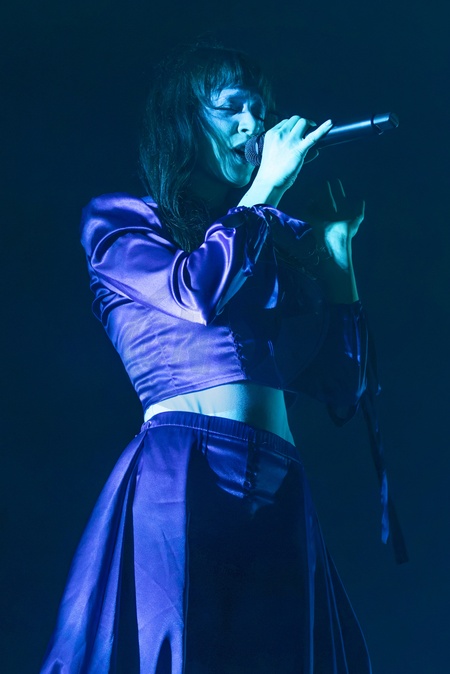 Mica Tenenbaum of American alternative pop duo Magdalena Bay performs at Manchester Apollo, Manchester, England, 8th February 2026, Credit:Mike Gray / Avalon