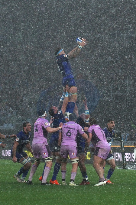 7/2/2026 Rome, Guinness M 6 Nations, Italy vs Scotland, in the photo Lorenzo Cannone under torrential rain lineout lift, Credit:MASSIMO LOVATI / Avalon