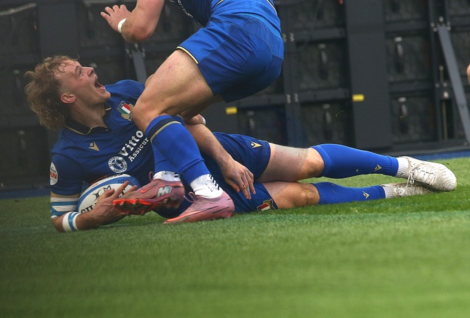 7/2/2026 Roma,Guinness M 6 Nations, Italia vs Scozia,nella foto LoLouis Linagh in meta, Credit:Massimo Lovati / Avalon