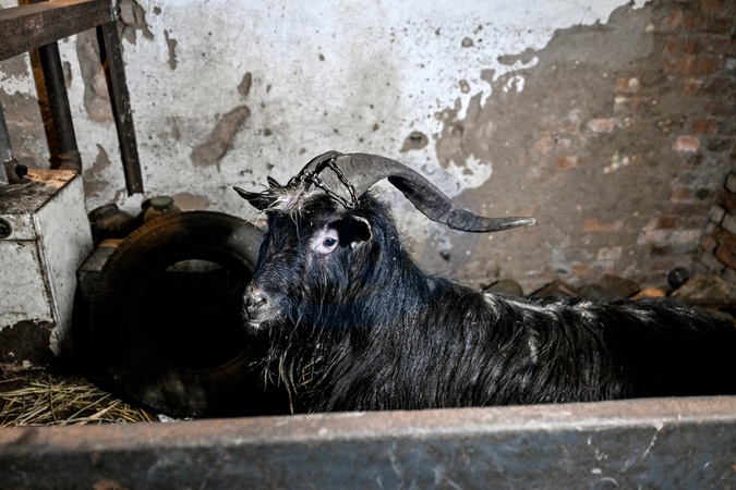 A goat is kept in the basement by local Viktor Zinchenko, Orikhiv, Zaporizhzhia region, Ukraine, February 6, 2026. Volunteers are set to evacuate nine goats from the front-line town of Orikhiv in the southeastern Zaporizhzhia region to the Pehas animal shelter in the Dnipropetrovsk region., Credit:Dmytro Smolienko / Avalon