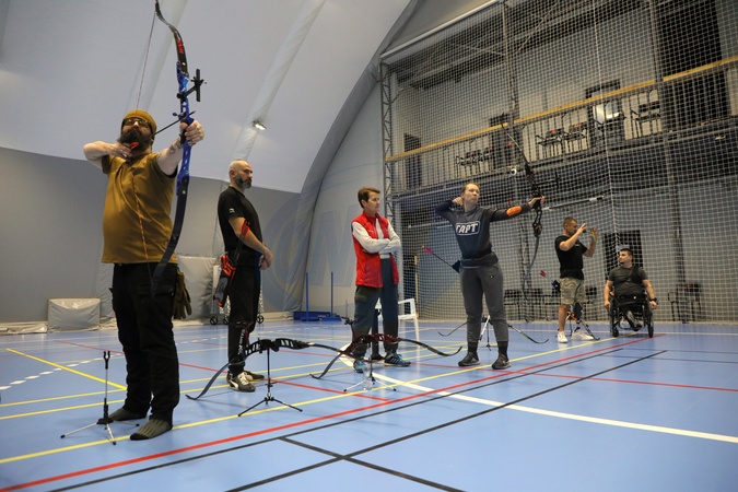 Invictus Games Team Ukraine archery coach Lesia Shakh (C) watches over athletes during the national veteran team's training camp in preparation for the 2026 Marine Corps & Air Force Trials (MC&AF Trials), to be held February 20–March 3, 2026, at Camp Pendleton, California, Kyiv, February 6, 2026. The team's preparation, training, and participation are organised by the Ministry of Veterans Affairs of Ukraine together with the CBA Initiatives Center, within the framework of the Veteran Policy Strategy and the National Strategy for Creating a Barrier-Free Space in Ukraine, developed at the initiative of First Lady Olena Zelenska., Credit:Yuliia Ovsiannikova / Avalon