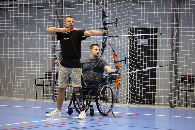 Members of the national veteran team practise archery during the training camp in preparation for the 2026 Marine Corps & Air Force Trials (MC&AF Trials), to be held February 20–March 3, 2026, at Camp Pendleton, California, Kyiv, February 6, 2026. The team's preparation, training, and participation are organised by the Ministry of Veterans Affairs of Ukraine together with the CBA Initiatives Center, within the framework of the Veteran Policy Strategy and the National Strategy for Creating a Barrier-Free Space in Ukraine, developed at the initiative of First Lady Olena Zelenska., Credit:Yuliia Ovsiannikova / Avalon