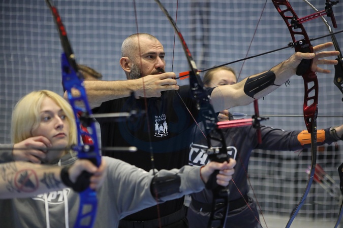 Members of the national veteran team practise archery during the training camp in preparation for the 2026 Marine Corps & Air Force Trials (MC&AF Trials), to be held February 20–March 3, 2026, at Camp Pendleton, California, Kyiv, February 6, 2026. The team's preparation, training, and participation are organised by the Ministry of Veterans Affairs of Ukraine together with the CBA Initiatives Center, within the framework of the Veteran Policy Strategy and the National Strategy for Creating a Barrier-Free Space in Ukraine, developed at the initiative of First Lady Olena Zelenska., Credit:Yuliia Ovsiannikova / Avalon