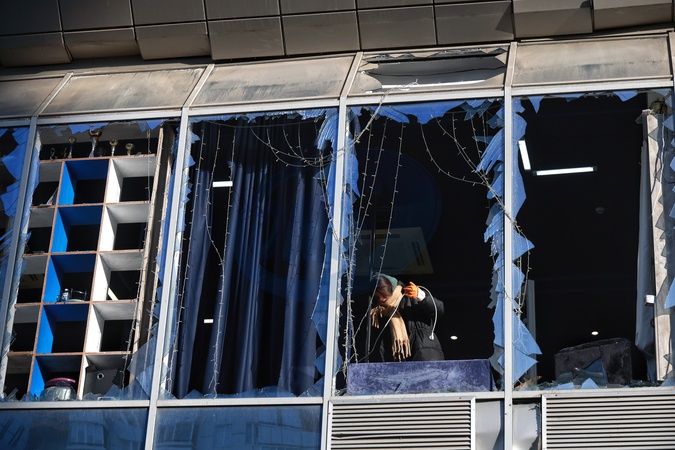 A woman removes glass shards in a window shattered by an overnight Russian drone strike, Odesa, Ukraine, February 9, 2026. On the night of February 9, the Russian army carried out a massive drone attack on Odesa and the region, hitting residential areas. One person was killed and two others were injured., Credit:Nina Liashonok / Avalon