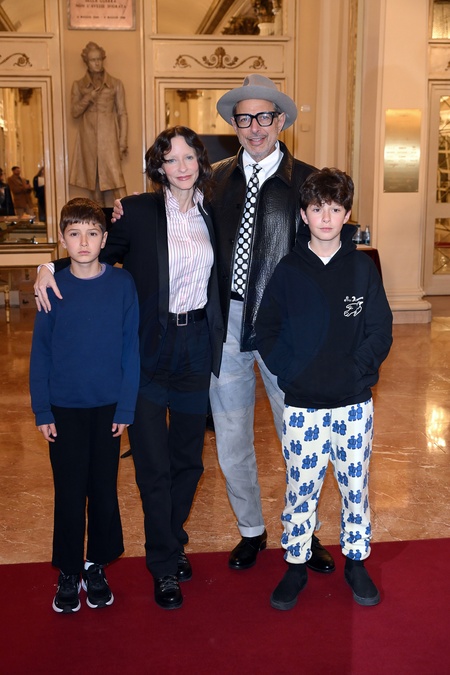 09/02/2026 Milan, Welcome cocktail for the guests of the Opening Ceremony of the Milan/Cortina 2026 Olympics at the Teatro alla Scala. - in the photo: Jeff Goldblum, his wife Emilie Livingston, and their children Charlie Ocean, River Joe, Credit:Max/AGF / Avalon