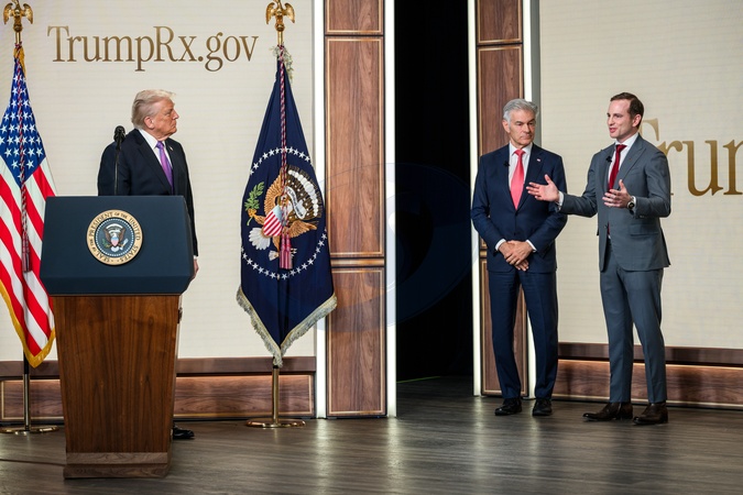 President Donald Trump announces the launch of TrumpRX in the South Court Auditorium, Thursday, February 5, 2026., Credit:Joyce N. Boghosian / Avalon