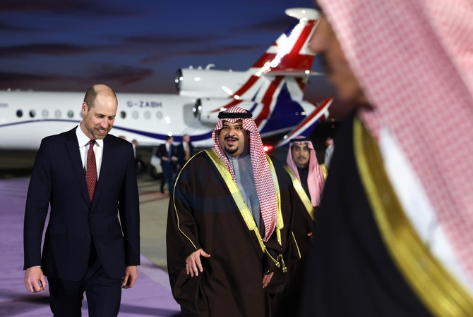 09/02/2026. Riyadh, Saudi Arabia. The Prince of Wales arrived into Saudi Arabia at the King Khalid International Airport, where he was formally welcomed by the Deputy Governor of Riyadh, HRH Prince Mohammed bin Abdulrahman bin Abdulaziz., Credit:Andrew Parsons / Kensington Palace / Avalon