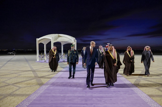 09/02/2026. Riyadh, Saudi Arabia. The Prince of Wales arrived into Saudi Arabia at the King Khalid International Airport, where he was formally welcomed by the Deputy Governor of Riyadh, HRH Prince Mohammed bin Abdulrahman bin Abdulaziz., Credit:Andrew Parsons / Kensington Palace / Avalon