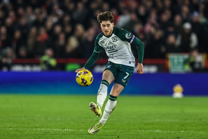 Hayden Hackney of Middlesbrough passes the ball during the Sky Bet Championship match Sheffield United vs Middlesbrough at Bramall Lane, Sheffield, United Kingdom on 09 February 2026, Credit:Ae Cosgrove/News Images / Avalon