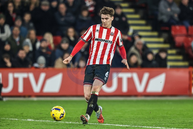 Tyler Bindon of Sheffield United passes back to Sheffield United goalkeeper Michael Cooper during the Sky Bet Championship match Sheffield United vs Middlesbrough at Bramall Lane, Sheffield, United Kingdom on 09 February 2026, Credit:Ae Cosgrove/News Images / Avalon