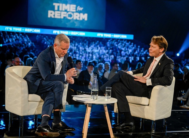 Richard Tice, deputy leader of Reform UK, during an interview with Jeremy Kyle ahead of a speech by Nigel Farage, leader of Reform UK, at the National Exhibition Centre (NEC) in Birmingham, UK, Credit:Jules Annan / Avalon