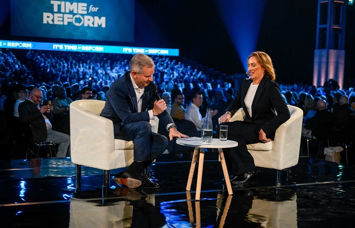 Sarah Pochin during an interview with Jeremy Kyle ahead of a speech by Nigel Farage, leader of Reform UK, at the National Exhibition Centre (NEC) in Birmingham, UK, Credit:Jules Annan / Avalon