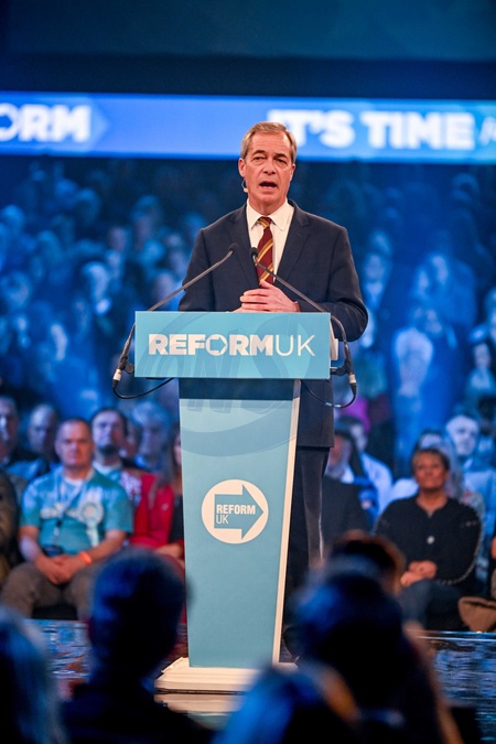 Nigel Farage Makes Major Speech At Reform UK Birmingham Rally, NEC, Birmingham. UK