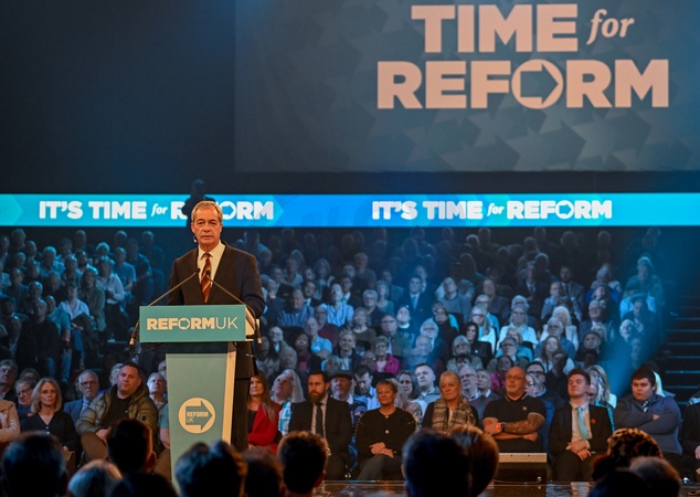 Nigel Farage, leader of Reform UK, delivers a speech at the National Exhibition Centre (NEC) in Birmingham, UK, on Monday, Feb. 9, 2026, Credit:Jules Annan / Avalon