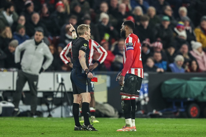Referee Gavin Ward gives a red card to Joe Rothwell of Sheffield United during the Sky Bet Championship match Sheffield United vs Middlesbrough at Bramall Lane, Sheffield, United Kingdom on 09 February 2026, Credit:Ae Cosgrove/News Images / Avalon