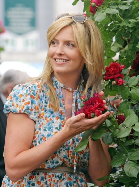 Rod Stewart z zona pozuja przy kwiatach w Grosvenor House Rose, Londyn