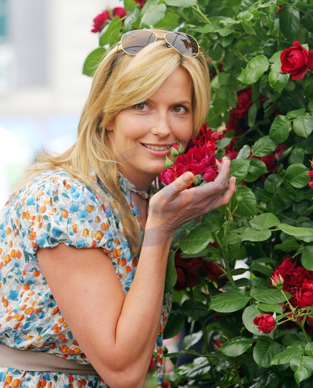 Rod Stewart z zona pozuja przy kwiatach w Grosvenor House Rose, Londyn