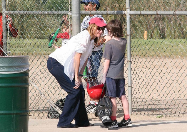 Calista Flockhart z synem na boisku, Brentwood
