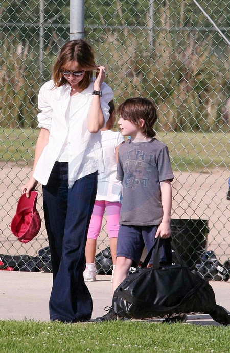 Calista Flockhart z synem na boisku, Brentwood