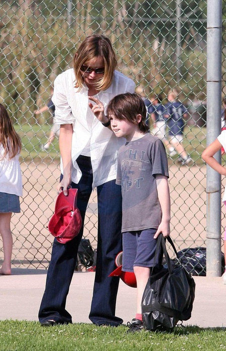 Calista Flockhart z synem na boisku, Brentwood