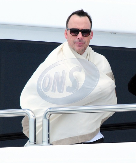 David Furnish na jachcie podczas 62.festivalu Filmowego w Cannes